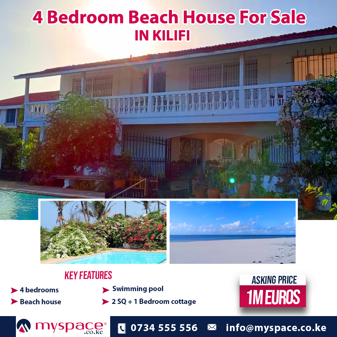 FOR SALE: 4-BEDROOM BEACH HOUSE – KILIFI BOFA